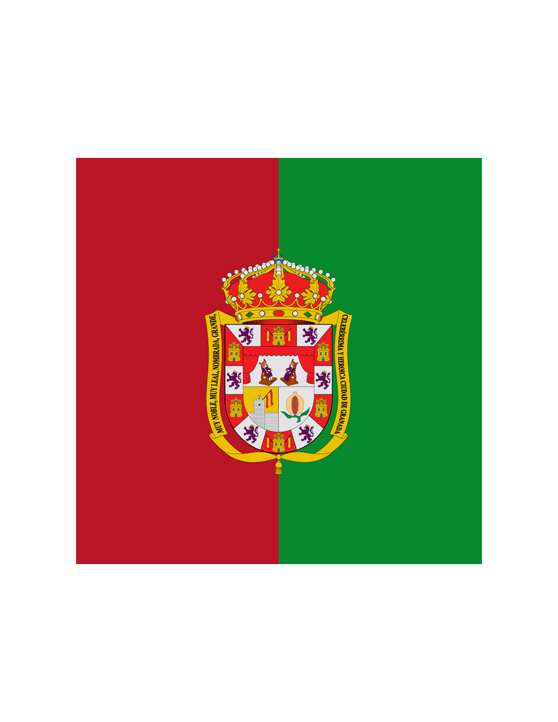 La bandera institucional de la ciudad de Granada está confeccionada en tejido 100% poliéster de 110gr. Es una pieza ideal para actos de protocolo e institucionales, para eventos deportivos y edificios culturales o institucionales. Su tejido es resistente y apto tanto para interiores como exteriores porque aguanta el frío, el calor y el agua.