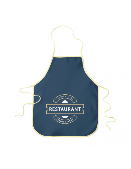 La composición del delantal es de Streck 170 gr (100% poliéster). El delantal está acabado con un bies alrededor que permite ajustarlo a la cintura.
