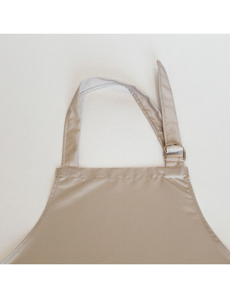 El tamaño del delantal es de 70x90 cm con la opción de añadir un bolsillo de 40x25 cm en el centro del delantal.