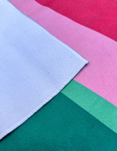 La personalización de las toallas es full print a una cara y el reverso en blanco. Resulta ideal para emprendedores que quieren sacar su línea de toallas para la playa, piscina o para regalos de empresa. ¡Descubre cómo crear una línea de toallas propia! Pregúntanos y te asesoraremos.
