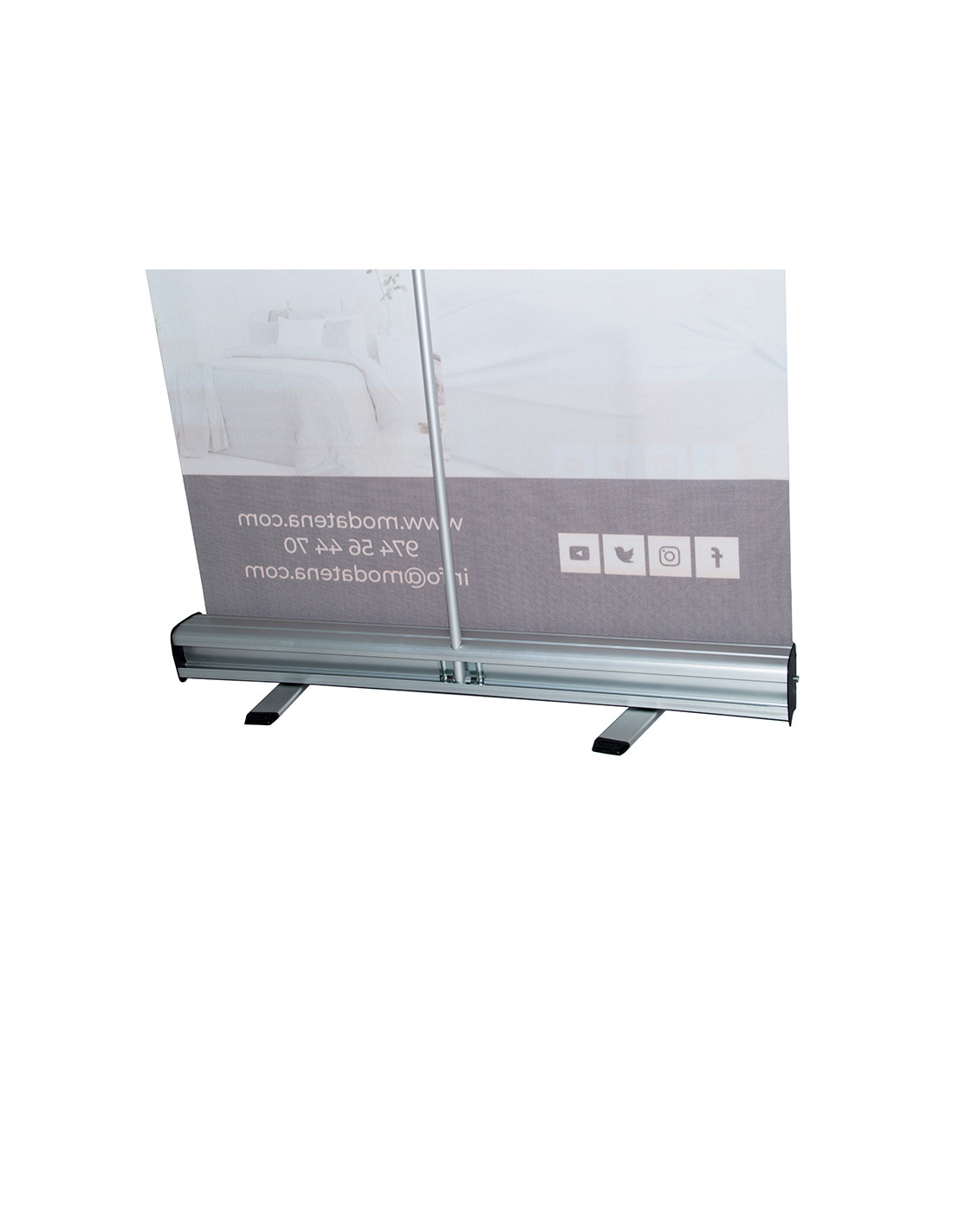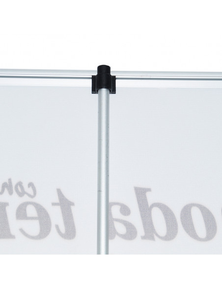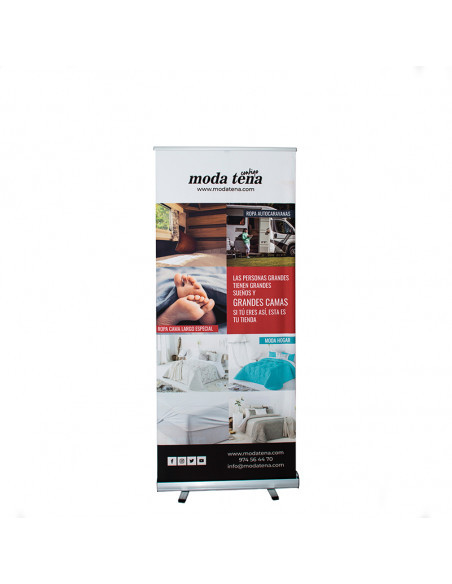 La gráfica es intercambiable, por lo que se puede usar para diferentes eventos, ferias o promociones en punto de venta. La estructura de este soporte publicitario está fabricada con aluminio y metal por lo que es muy resistente al paso del tiempo. Su montaje es muy sencillo y no se necesitan herramientas especiales. Además, incluye una pieza especial que mejora la estabilidad del display promocional. Es totalmente desmontable y puede transportarse de manera sencilla gracias a la bolsa que incorpora.